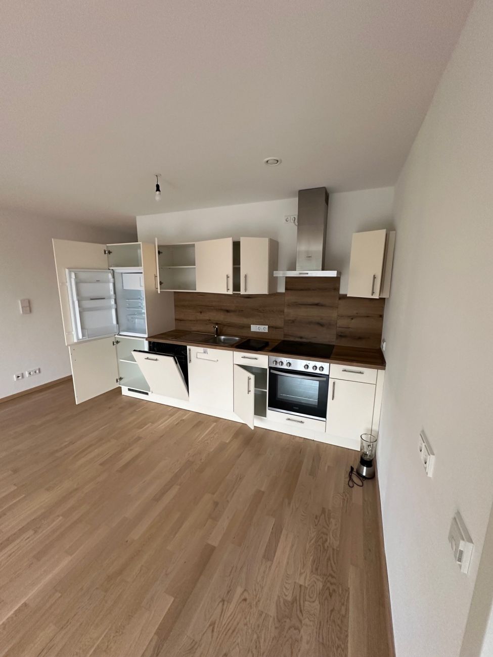 BeschreibungDiese stilvolle 2-Zimmer-Wohnung befindet sich in zentraler Lage des Marktes Buchbach (Landkreis Mühldorf a. Inn) und eignet sich bestens für einen Singlehaushalt. Die Wohnung befindet sich im Obergeschoss (Lift vorhanden - bis zum Keller) und ist barrierefrei. Die Wohnfläche von ca. 57 m² verteilt sich auf den geräumigen Eingangsbereich/Flur, das hochwertig ausgestattete Badezimmer, ein komfortables Schlafzimmer und den sehr großzügigen Wohn-/ Ess-/ und Kochbereich. Von hier aus gelangen Sie auch auch auf den ca. 6,5 m² großen Südbalkon. Die Einbauküche gehört zur Wohnung. Ausstattung die keine Wünsche offen lässt: Die Wohnung ist mit hochwertigem Parkettboden ausgestattet; das Bad verfügt über eine bodenebene Dusche mit Glasduschwand – helle Wand-/ und dunkle Bodenfliesen runden das Bad ab; der Wohnbereich und das Schlafzimmer verfügen über eine DV-Verkabelung (Netzwerk); ebenso sind elektr. steuerbare Rollladen angebracht. Des Weiteren verfügen alle Räume über eine sparsame Fußbodenheizung – perfekt in Kombination mit den 3-fach-verglasten Fenstern und der Lüftungsanlage. Die Beheizung erfolgt zentral über eine Holz-Pellets-Heizung. Zur Wohnung gehört noch ein geräumiger Kellerraum und ein überdachter PKW-Stellplatz mit Lademöglichkeit (€ 70,00 mtl.). Diese Wohnung bietet Ihnen höchsten Wohnkomfort; der Bezug kann ab Mai 2026 erfolgen - aber bitte - ohne Haustiere.