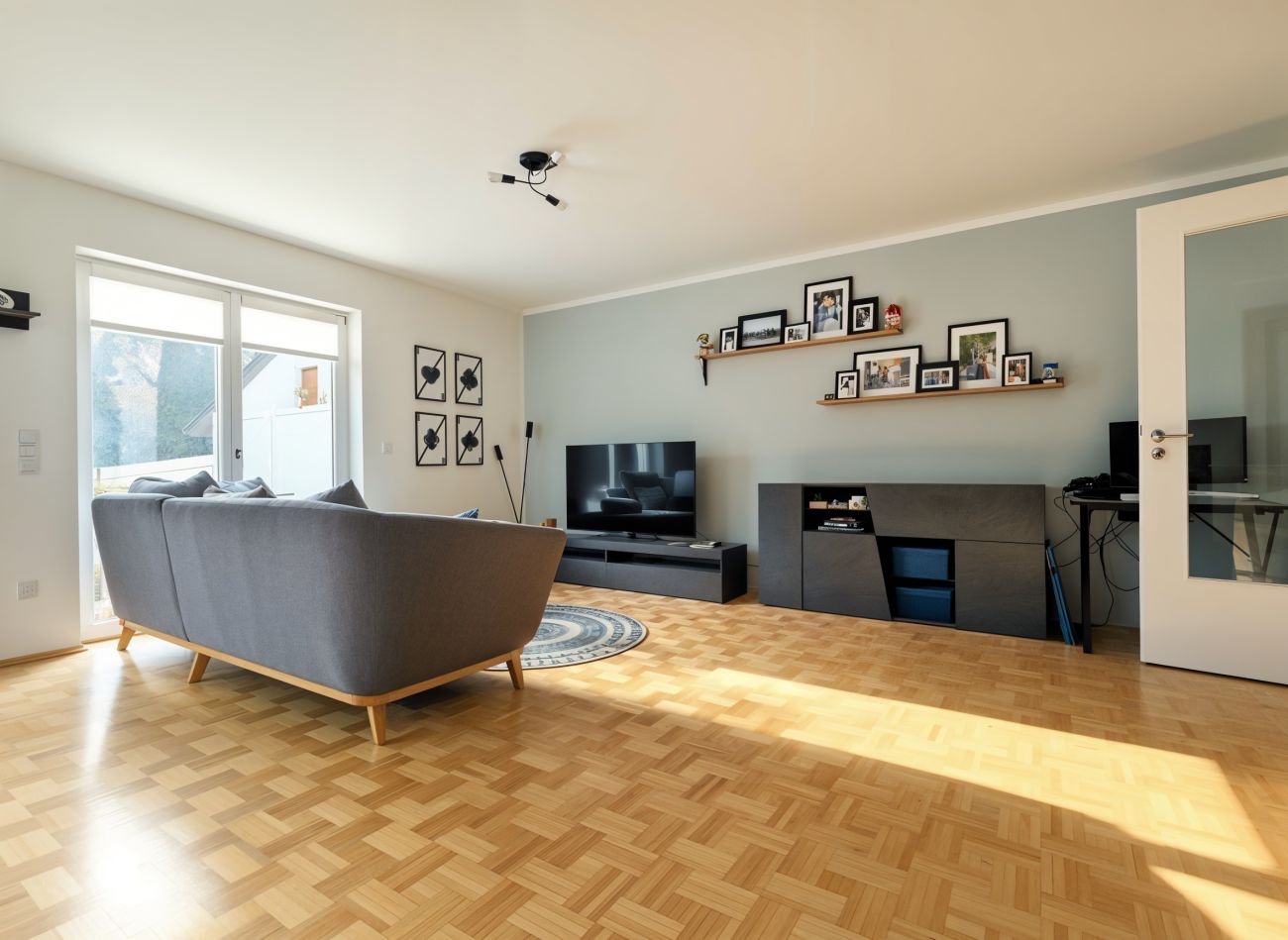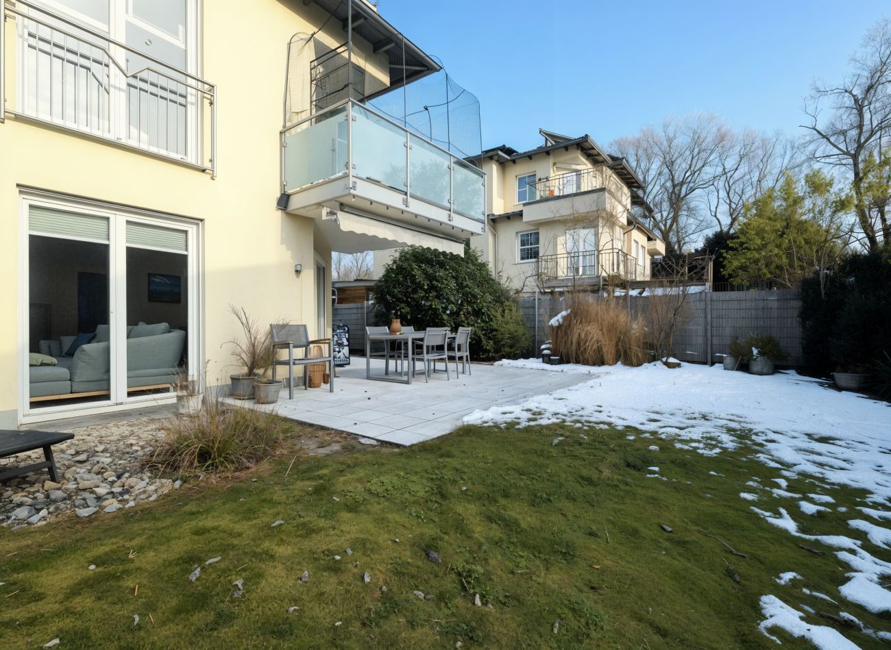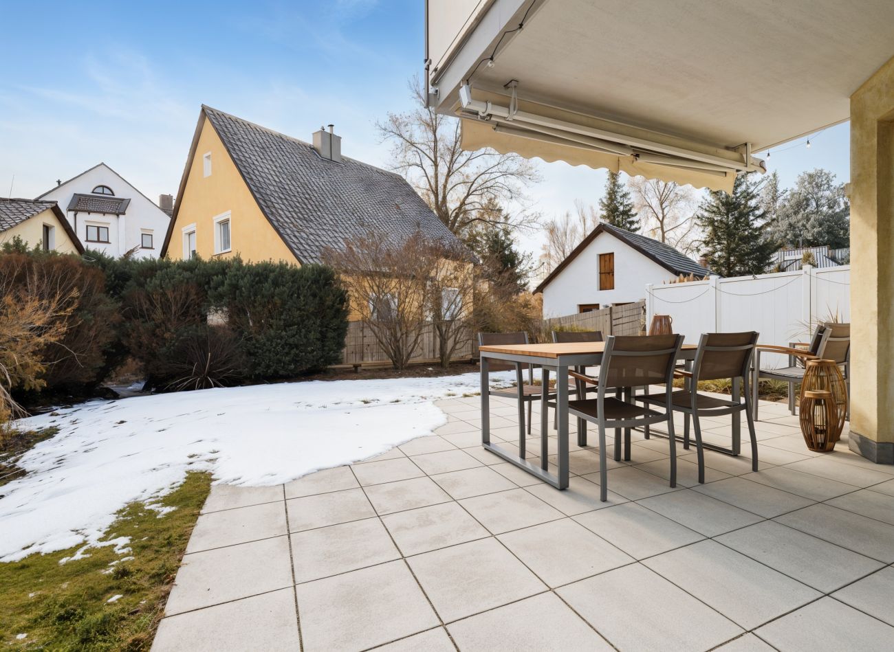 Beschreibung Diese moderne 3-Zimmer-Erdgeschosswohnung befindet sich in einem gepflegten Mehrfamilienhaus (nur acht Parteien) aus dem Jahr 2007 - in Eching - und bietet mit ca. 93 m² Wohnfläche ein komfortables Zuhause mit durchdachter Raumaufteilung. Die S-Bahnhaltestelle erreichen Sie bequem zu Fuß in ca. 5 Minuten. Die Wohnung präsentiert sich in einem sehr guten, gepflegten Zustand und überzeugt durch helle, großzügige Räume. Der Wohn-/Essbereich, die Schlafräume und die Diele sind mit hochwertigem Parkettboden versehen, während das Badezimmer teilgefliest ist und mit ovaler Eckbadewanne, Dusche, zwei Waschbecken, WC, Fenster sowie angenehmer Fußbodenheizung ausgestattet ist. Auch Küche und Flur verfügen über eine Fußbodenheizung. Die weißen Kunststofffenster sind mit elektrischen Rollläden versehen und passen perfekt zu den weißen Innentüren. Highlight dieser Wohnung ist der eigene, ca. 300 m² große Garten (Süd-Ost) mit Terrasse (Markise vorhanden) – der ideale Ort zum Entspannen! Die vorhandene Einbauküche (ohne Kühlschrank), das kleine Gartenhaus und weitere Einrichtungsgegenstände können gegen eine faire Ablöse übernommen werden. Nicht zu vergessen ist noch der sehr praktische Abstellraum. Zur Wohnung gehören zwei Tiefgaragenstellplätze (à € 60,00 mtl.), sowie ein ca. 15 m² großer, beheizbarer Hobbykeller mit Internetanschluss – ein idealer Trainingsraum, oder auch Bereich für das Home-Office! Darüber hinaus stehen ein gemeinschaftlicher Waschtrockenraum mit Anschlüssen für Waschmaschine und Trockner sowie ein Fahrradkeller zur Verfügung. Diese einmalige Wohnung kann ab 01.03.2026 bezogen werden, aber bitte – ohne Hund(e). Die Wohnung eignet sich bestens für ein Paar, aber auch eine 3-köpfige Familie findet hier ein tolles Zuhause!