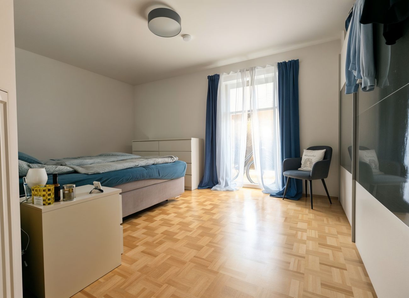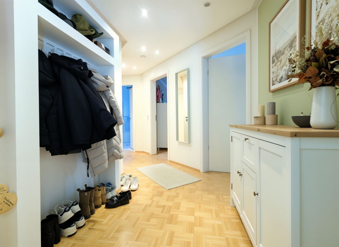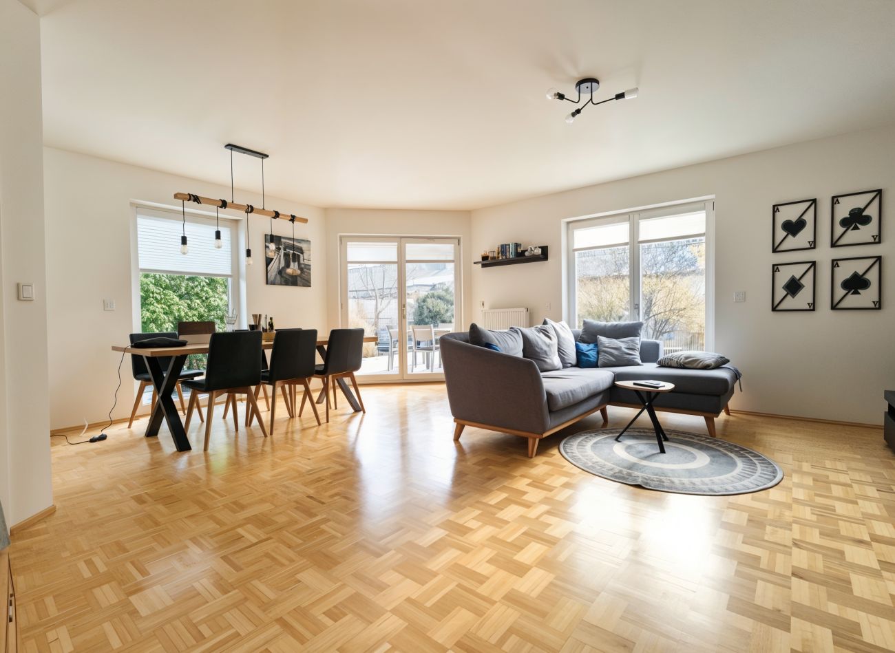 Beschreibung Diese moderne 3-Zimmer-Erdgeschosswohnung befindet sich in einem gepflegten Mehrfamilienhaus (nur acht Parteien) aus dem Jahr 2007 - in Eching - und bietet mit ca. 93 m² Wohnfläche ein komfortables Zuhause mit durchdachter Raumaufteilung. Die S-Bahnhaltestelle erreichen Sie bequem zu Fuß in ca. 5 Minuten. Die Wohnung präsentiert sich in einem sehr guten, gepflegten Zustand und überzeugt durch helle, großzügige Räume. Der Wohn-/Essbereich, die Schlafräume und die Diele sind mit hochwertigem Parkettboden versehen, während das Badezimmer teilgefliest ist und mit ovaler Eckbadewanne, Dusche, zwei Waschbecken, WC, Fenster sowie angenehmer Fußbodenheizung ausgestattet ist. Auch Küche und Flur verfügen über eine Fußbodenheizung. Die weißen Kunststofffenster sind mit elektrischen Rollläden versehen und passen perfekt zu den weißen Innentüren. Highlight dieser Wohnung ist der eigene, ca. 300 m² große Garten (Süd-Ost) mit Terrasse (Markise vorhanden) – der ideale Ort zum Entspannen! Die vorhandene Einbauküche (ohne Kühlschrank), das kleine Gartenhaus und weitere Einrichtungsgegenstände können gegen eine faire Ablöse übernommen werden. Nicht zu vergessen ist noch der sehr praktische Abstellraum. Zur Wohnung gehören zwei Tiefgaragenstellplätze (à € 60,00 mtl.), sowie ein ca. 15 m² großer, beheizbarer Hobbykeller mit Internetanschluss – ein idealer Trainingsraum, oder auch Bereich für das Home-Office! Darüber hinaus stehen ein gemeinschaftlicher Waschtrockenraum mit Anschlüssen für Waschmaschine und Trockner sowie ein Fahrradkeller zur Verfügung. Diese einmalige Wohnung kann ab 01.03.2026 bezogen werden, aber bitte – ohne Hund(e). Die Wohnung eignet sich bestens für ein Paar, aber auch eine 3-köpfige Familie findet hier ein tolles Zuhause!