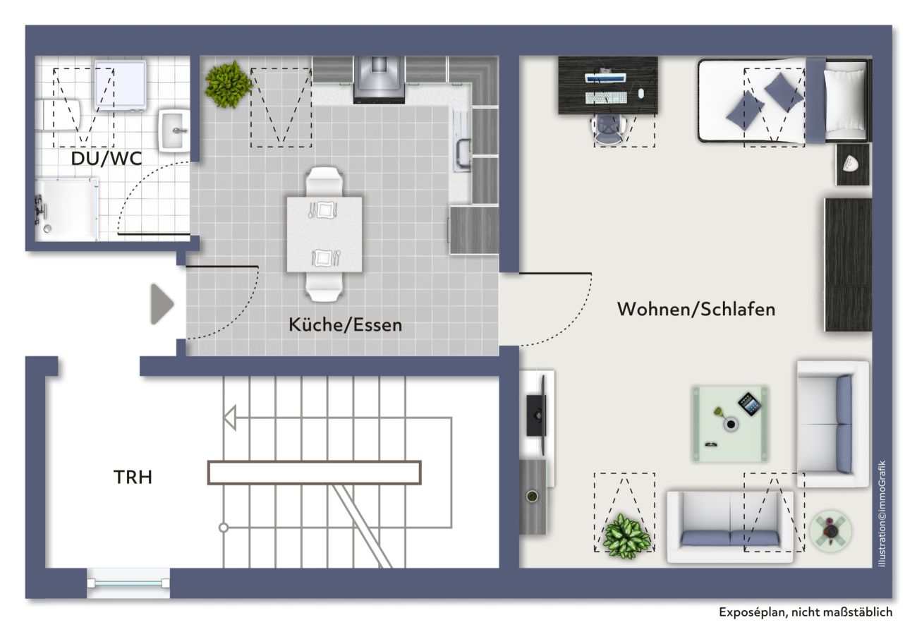 Beschreibung Diese gepflegte und praktisch geschnittene 1,5-Zimmer-Wohnung, befindet sich im 2. OG (=Dachgeschoss) eines 6-Parteienhauses in sehr zentraler, aber dennoch ruhiger Lage der Großen Kreisstadt Erding. Sie ist nur 5 Gehminuten vom S-Bahnhof und der Innenstadt entfernt. Die Architektur dieses Appartements ist ideal: Das helle Bad ist ein Duschbad mit Fenster und Anschluss für eine Waschmaschine. Die Küche, ausgestattet mit einer Einbauküche, bietet genügend Platz um einen Essbereich zu integrieren. Das Wohn-/ und Schlafzimmer ist hell und freundlich und durch die komfortable Größe lässt sich hier Wohnen und Schlafen gut vereinbaren. Aufgrund des hohen Kniestocks wird die Wohnfläche durch die Dachschrägen fast nicht beeinflusst. Das Bad ist zeitlos hell gefliest, ebenso der Küchenbereich. Im Wohnzimmer ist ein heller und pflegeleichter Laminatboden verlegt. Zu dieser Wohnung gehört ein geräumiges Kellerabteil mit Stromanschluss; ebenso ein Tiefgarageneinzelstellplatz. Die Wohnung ist seit vielen Jahren an einen sehr zuverlässigen Mieter vermietet. Aufgrund der hohen Mietnachfrage in Erding, ist bei einem Mieterwechsel, kein Leerstand zu erwarten. Sie finden hier eine solide Kapitalanlage in sehr begehrter Wohnlage - am Rande der Erdinger Altstadt. Der Kaufpreis setzt sich zusammen: € 220.000,00 für die Wohnung zuzüglich € 20.000,00 für den TG-Stellplatz, Gesamtkaufpreis somit € 240.000,00.