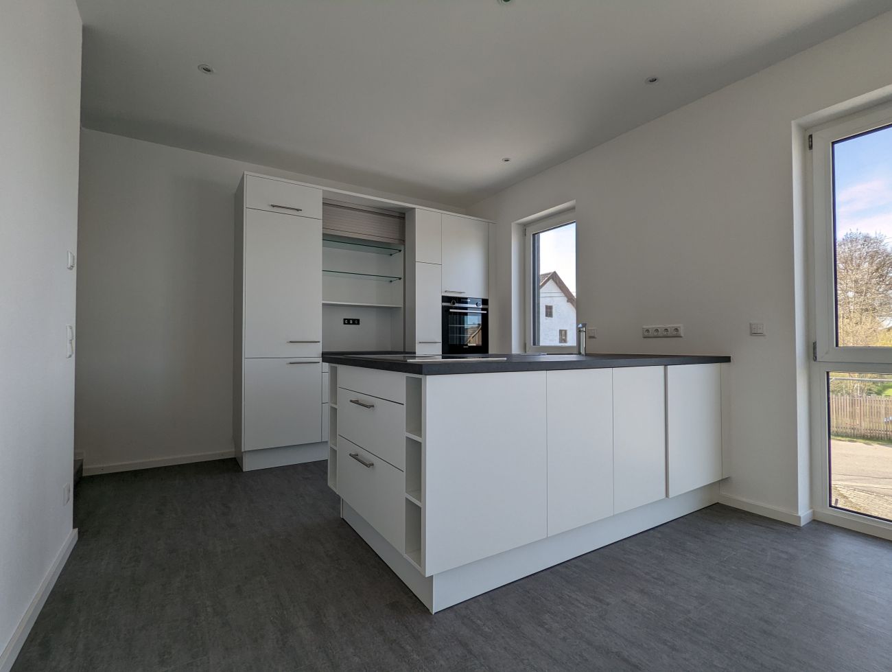 Beschreibung Diese individuell geschnittene 3-Zimmer-Wohnung (+ Galerie) befindet sich im Obergeschoss eines Wohn-/ und Geschäftshauses in Arndorf, einem Ortsteilt der Gemeinde Kirchberg. Die Wohnfläche von ca. 114 m² bietet Ihnen viel Platz und einen hohen Wohnkomfort. Die großzügige Diele mit ca. 24 m² bietet viel Platz für Ihre Garderobe; ebenso finden hier Waschmaschine und Trockner Platz. Von hier aus gelangen Sie über eine Treppe zur offenen Galerie - der ideale Platz für ein Büro. Das Bad (mit Dachfenster) ist top-modern ausgestattet; Sie finden hier eine bodenebene Dusche, eine Wanne und einen Doppelwaschtisch. Das komfortable Schlafzimmer ist ca. 15 m² groß und bietet ausreichend Platz für ein großes Bett und einen mehrtürigen Kleiderschrank. Das Wohnzimmer bietet Ihnen mit ca. 34 m² viele Möglichkeiten Ihren Wohnbereich zu gestalten. Der Koch-/ und Essbreich ist durch seine bodentiefen Fenster stets hell und ist mit einer hochwertigen Einbauküche, mit Markengeräten, ausgestattet, welche im Mietpreis enthalten ist. Durch die tolle Größe von ca. 28 m² lässt sich hier ein großer Esstisch stellen. Noch besonders zu erwähnen ist der sonnige, überdachte Balkon - der ideale Platz zum Relaxen! Die Wohnräume sind mit hochwertigem Vinylboden versehen; das Bad ist modern gefliest. Die Beheizung erfolgt überwiegend mit einer sparsamen Fußbodenheizung. Zur Wohnung gehört noch ein PKW-Außenstellplatz, welcher in der Miete bereits enthalten ist; ein weiterer könnte, bei Bedarf, noch angemietet werden. Ebenso steht noch eine Lagerfläche (ca. 9 m²) zur Verfügung. Diese Wohnung ist durch den individuell gestalteten Grundriss ein wahrer Blickfang und kann ab Oktober 2025 bezogen werden.